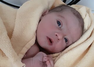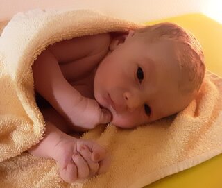 Herzlichen Glückwunsch zur Geburt von Emilian. Das gesamte Kreißsaalteam wünscht alles Liebe und Gute für die Zukunft.